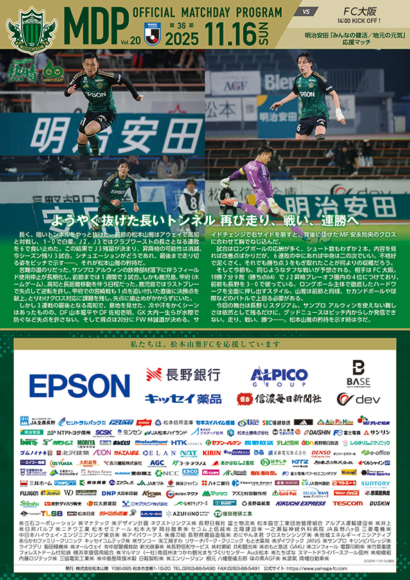 11月16日(日) 14:00 長野Uスタジアム