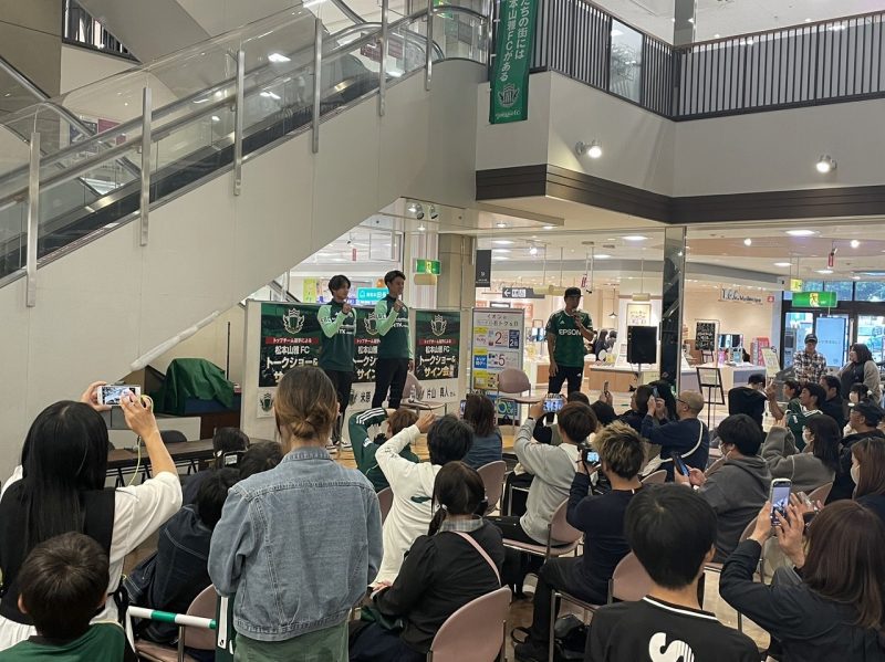 10月9日(月・祝)イオン南松本店で行われた「選手トークショー&サイン会」に米原秀亮選手、安永玲央選手、片山真人クラブプロモーション担当が参加しましたのでご報告いたします。
