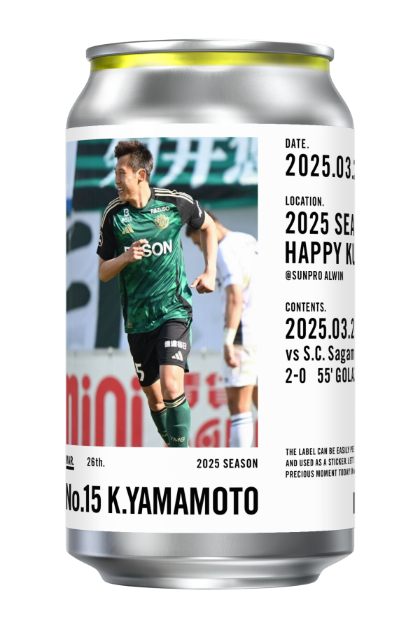 ハッピーくじ限定のラベル缶がラインナップ入り。今節は3/23相模原戦に出場した選手のデザインを予定しております。