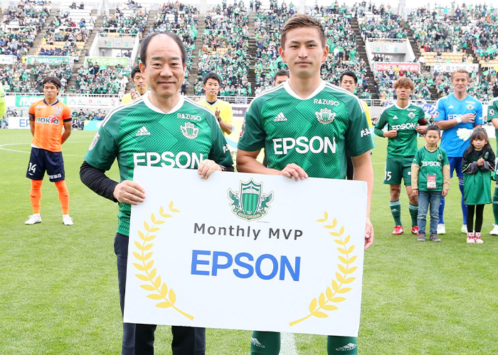 月間MVP受賞選手にエプソン製品を贈呈します。